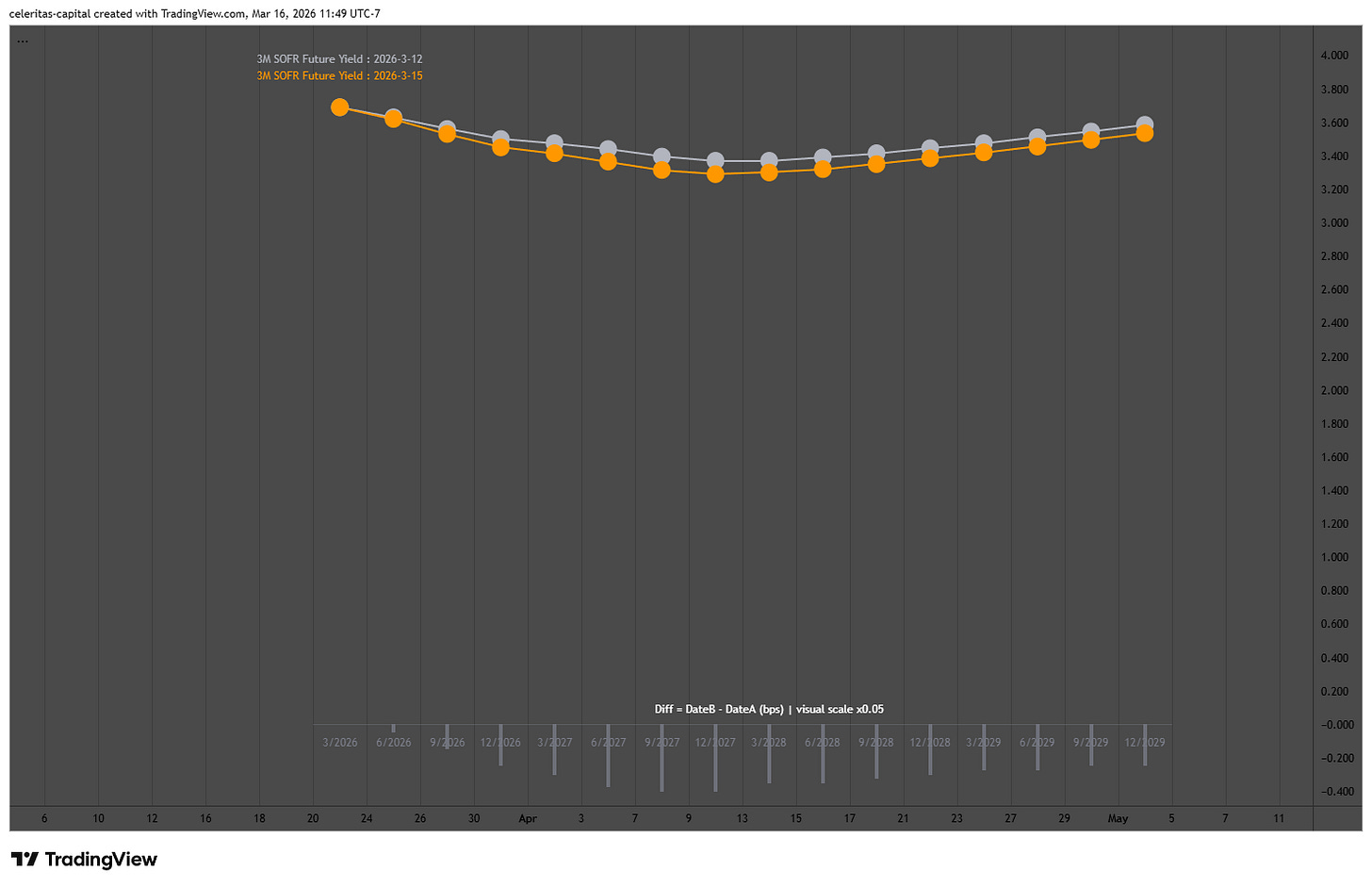 Here is to the first of many model releases powered by Celeritas Capital. These are TradingView pine script indicators for STIR trading and analysis. The SOFR PnL driver is a direct adaptation of a model posted by Capital Flows which you can find here. I also must shoutout Capital Flows article below there is five more TradingView models that are great and so much education. The STIR Levels is heavily inspired by the CB Levels script shared by Capital Flows. I made it easier to change to different STIR contracts. Finally, the Curve Compare Indicator is based on a Bloomberg indicator I have seen around. All of the indicators should allow you to view and copy the code for yourself so you can build onto them or create your own! Let me know what you think about the indicators in the comments or shoot me a message or email.