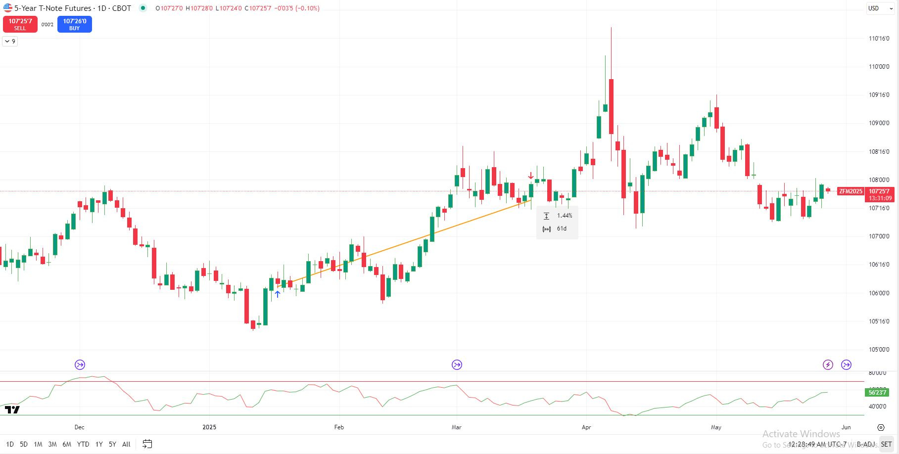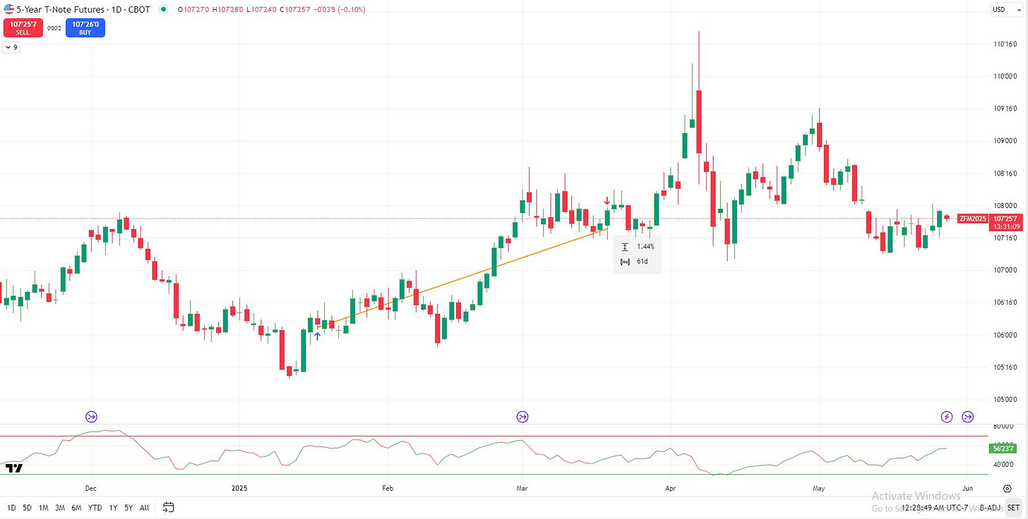 The next trade to review is a long position in the 5-Year U.S. Treasury Bond Futures contract (ZF).