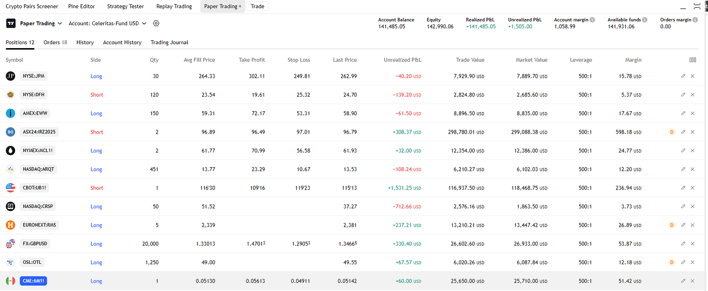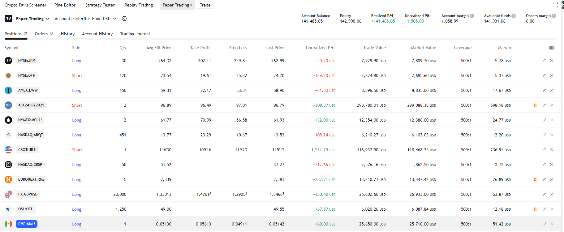 Since I’ve unintentionally been neglecting updates on the Celeritas Main Fund, I won’t be posting every trade in this update. (If you'd like to review the trades in detail, feel free to message me.) I’ll return to posting all trades in the next Celeritas Fund Review.