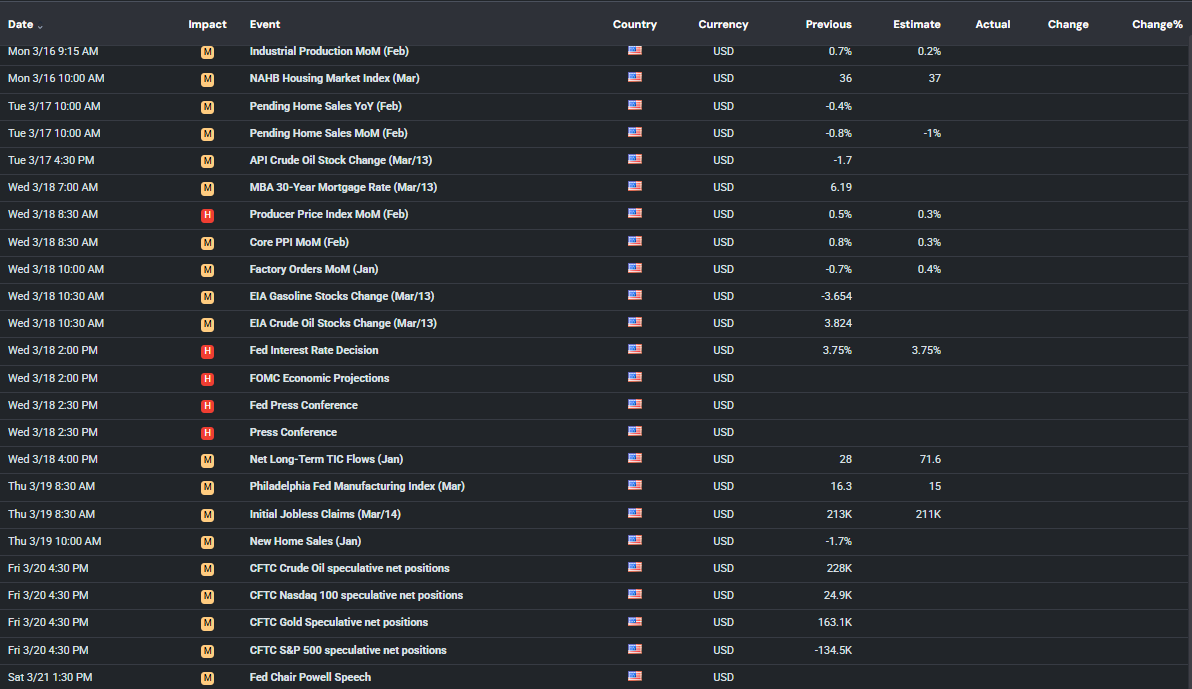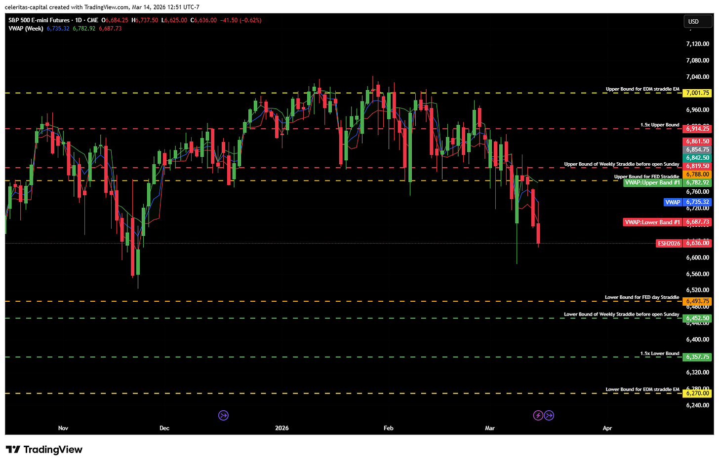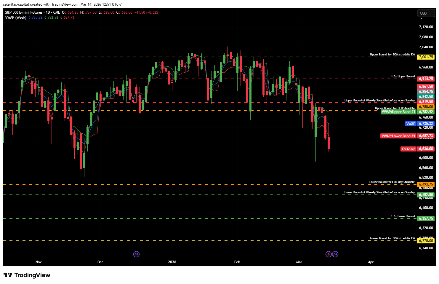 Hello everyone welcome back to Celeritas Capital I am just doing a quick week ahead post for the upcoming week of 3/16/26-3/20/26. This is unlikely to become a weekly thing as I have new commitment that will be taking up a lot of up time for the foreseeable future but I know it will make both my life and Celeritas Capital much better. Final note this post is inspired by Yamco and his weekly posts, the latest you can find below. I think I added some important data and I made this for Futures traders primarily. Now let us get started! (Note this article is best read via Substack using the website or app.)