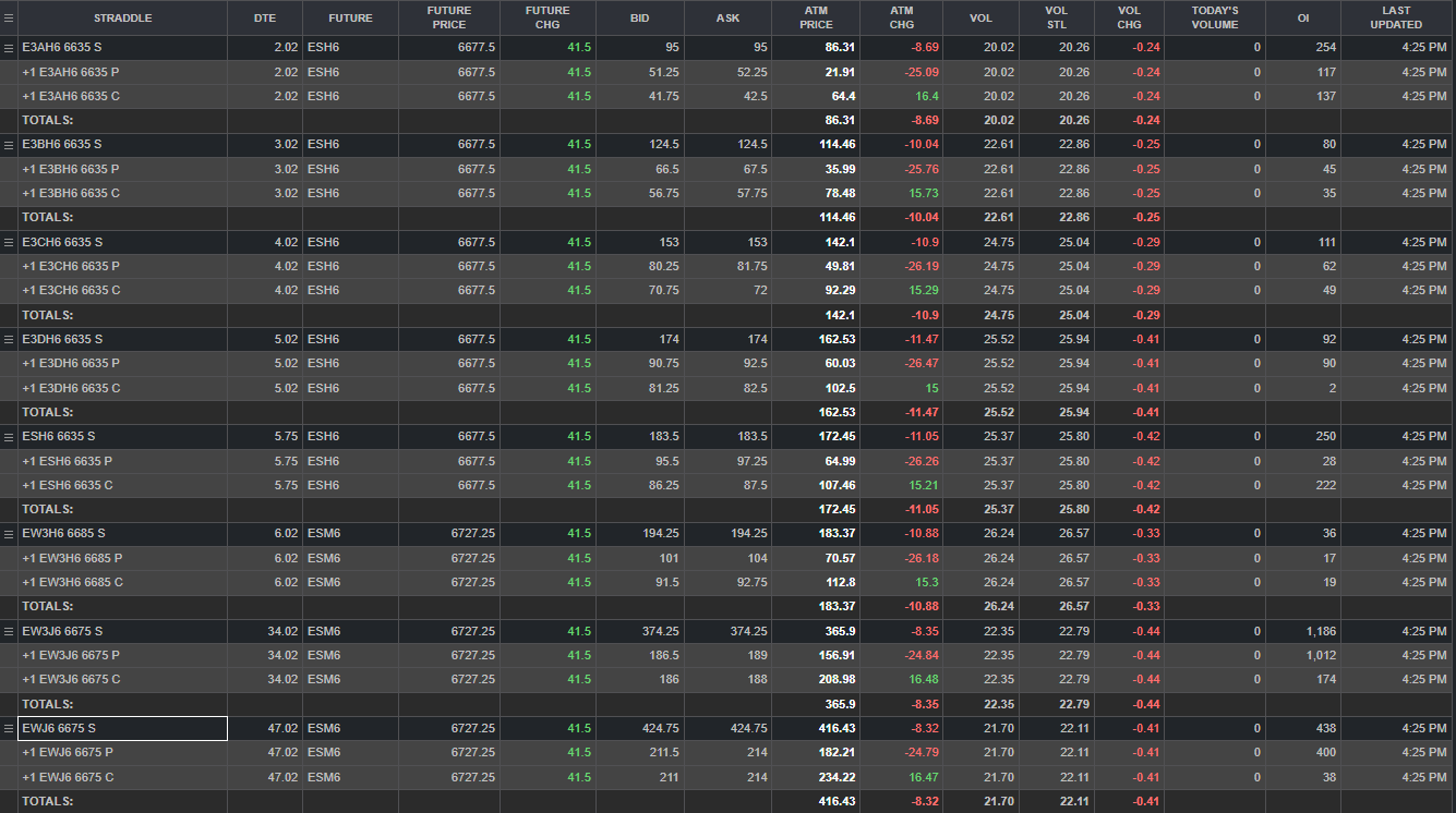 ES Straddle Pricing for next week and beyond: